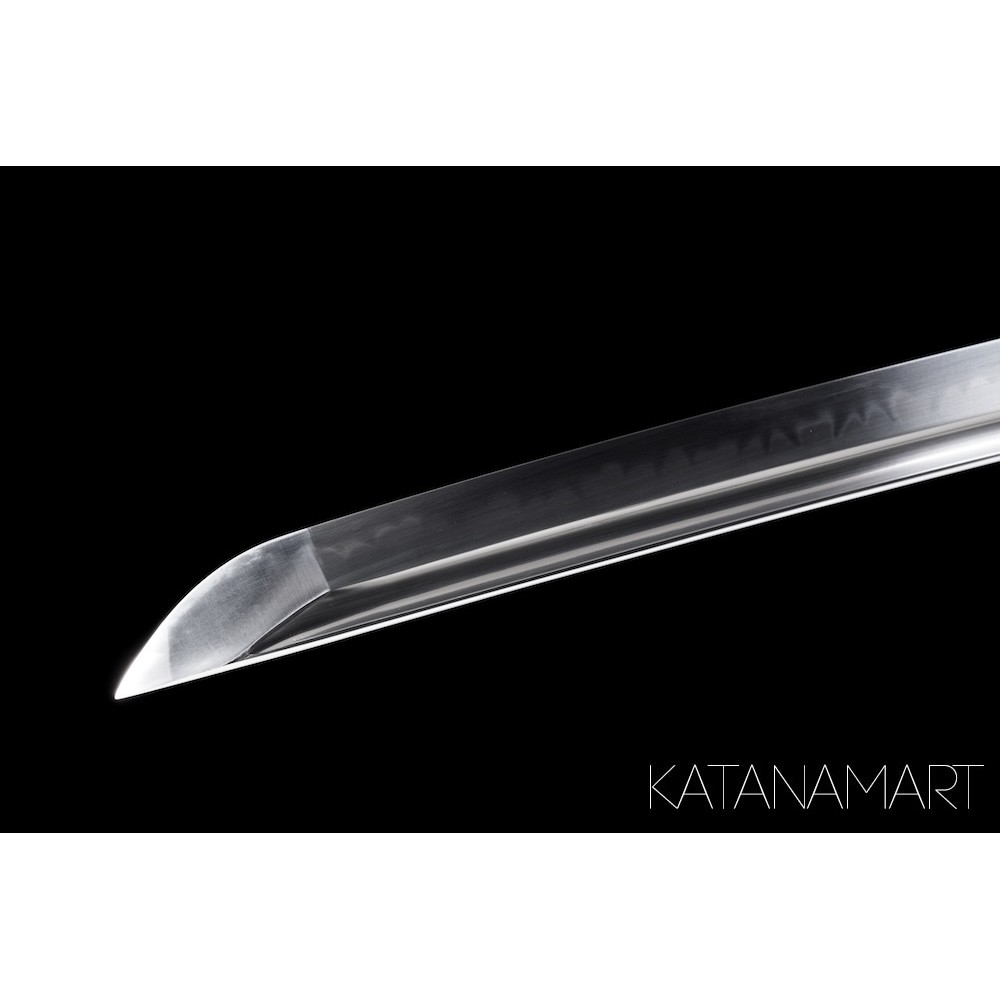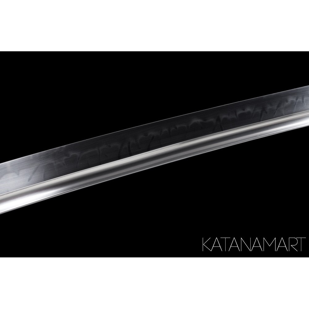 Serce tego miecza stanowi klinga wykonana z wysokowęglowej stali 1060 High Carbon Steel, poddanej procesowi clay tempering (hartowanie w glinie). Dzięki temu uzyskano autentyczny hamon w stylu Tōran-midare – falisty, dynamiczny wzór, który jest nie tylko ozdobą, ale także dowodem na mistrzowską technikę obróbki cieplnej. Klinga została ręcznie wypolerowana, co uwydatnia jej linie i sprawia, że hamon jest wyjątkowo widoczny.