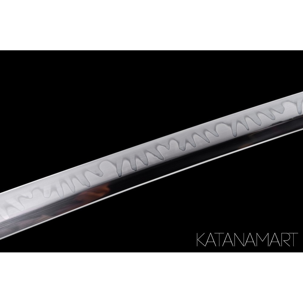 Klinge została wykonana z wysokowęglowej stali 1095 High Carbon Steel, hartowanej metodą clay tempering. Dzięki temu powstał autentyczny hamon w stylu Togari-Gunome, o ostrych, wyrazistych liniach. Proces ręcznego polerowania dodatkowo uwydatnia wzór, czyniąc klingę nie tylko funkcjonalnym narzędziem, ale i dziełem sztuki.