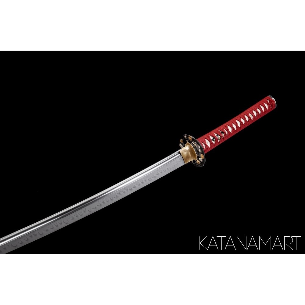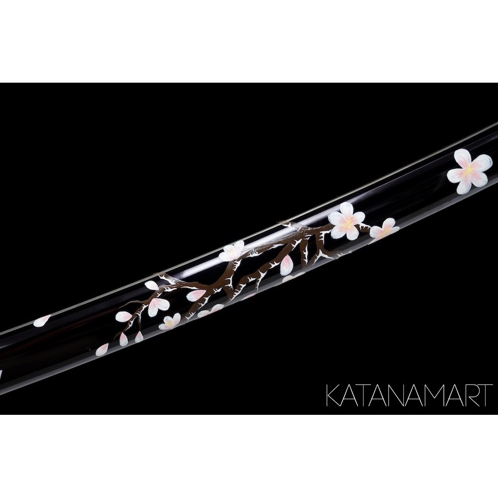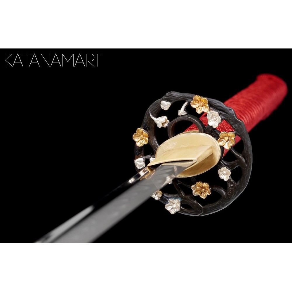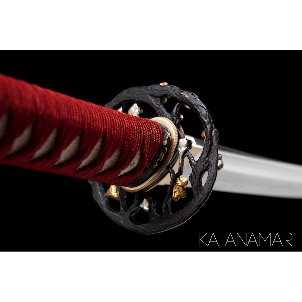 Otomo Katana – elegancki miecz samurajski z motywem sakura. Ręczna klinga ze stali 1095, hartowana w glinie z hamonem Togari-Gunome. Świetna dla osób chcących kupić katana japońska do treningu i kolekcji.